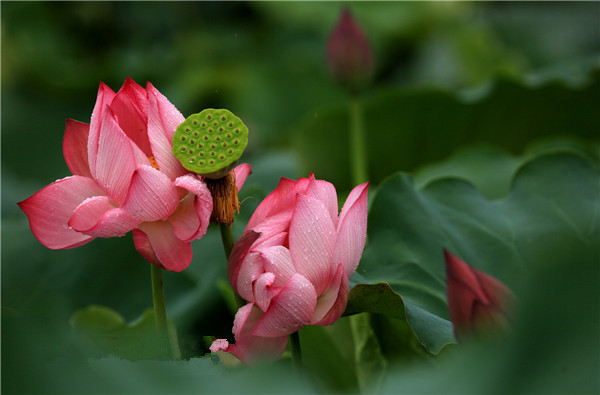 华蓥市阳和镇鸽笼山村拍摄的被秋雨滋润变得分外妖娆艳丽的荷花。
