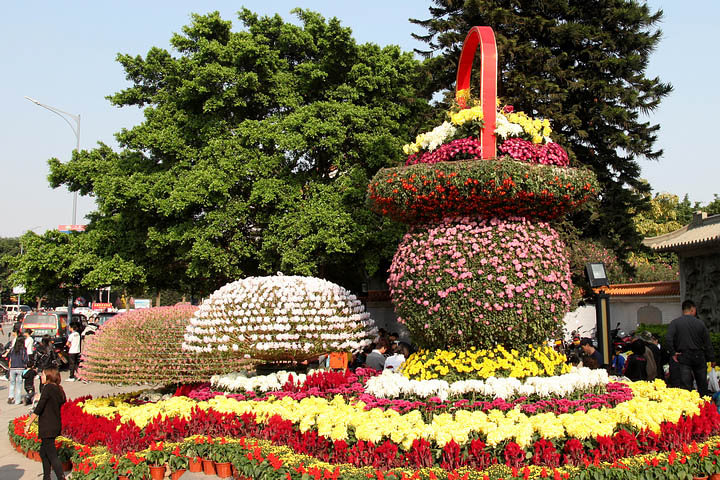 人民广场展区主要展出包括“中国梦”、“咏菊”、“河山”、“金秋菊韵”等七个气势恢弘、主题鲜明的立体花坛。