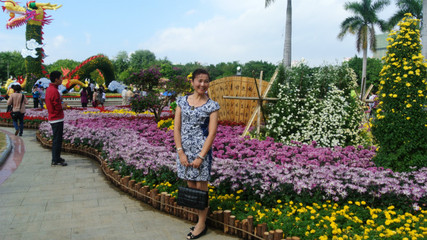 “中国梦”花坛长25米,宽8米,最高点6.5米,以国旗、国徽、帆船为主景,以大立菊、菊树、菊花盆景、盘龙等多种菊艺造型进行点缀,再用盆菊、时令花卉等进行配合,组成了一片花海,突显“中国梦———扬帆远航”的主题!