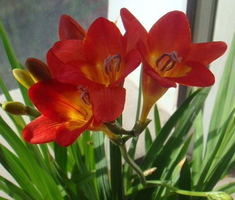 朱顶红:传统的花色多为红色或粉色的单瓣花,花瓣的层次也不是那么的丰富(俗称“土猪”),而近年引进的杂交朱顶红(俗称“洋猪”),花色丰富,有大红、玫红、橙红、淡红、白、蓝紫、绿、粉中带白、红中带黄等色,还有层次也较为丰富重瓣花,其花朵交大,最大直径可达20厘米,还有不少是适合盆栽观赏的矮生品种。可用于装饰客厅、书房、窗台、阳台等处,某些品种还可以水培观赏。