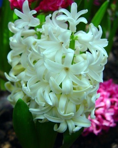 风信子:单朵花并不大,但由几十朵小花组成的花序就非常壮观了,其花色丰富,有粉、白、蓝、紫等,而且浓郁的芳香。它们都可用于小型工艺花盆栽种,陈设于案头、窗台等处,时尚新颖,流光溢彩,具有很好的装饰效果。
