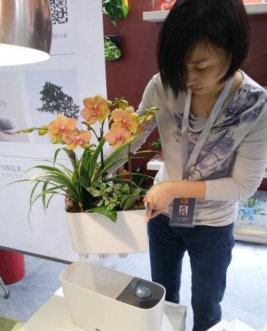 在另一家意欲在中国寻找合作伙伴的韩国展区前,记者看到了具有自动供水灌溉系统的支架形花盆。其底部的封闭小水箱中的水通电即可将水送到每个花盆底部。工作人员告诉记者,这样的花架在韩国已经逐步进入餐厅、宾馆、咖啡厅等场所,每月只需通电一次即可完成灌溉,让养花变得更容易。