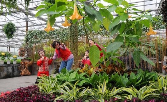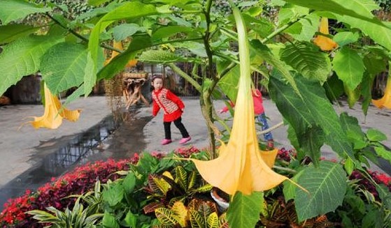 西安花卉网消息: 昨天,来北京世界花卉大观园游玩的游客惊喜地发现,在精品花卉厅有一颗奇特的花卉开花了,金灿灿的大喇叭花很好看,很奇特,一朵朵盛开的黄黄的喇叭花似倒挂的喇叭挂在枝头煞是好看。一个小女孩跑到曼陀罗花下,睁大眼睛歪头看:这小喇叭里都有啥呀?另外两个小朋友则兴奋地高喊:妈妈,树上的小喇叭开始广播了……一时间吸引了众多游人的视线。