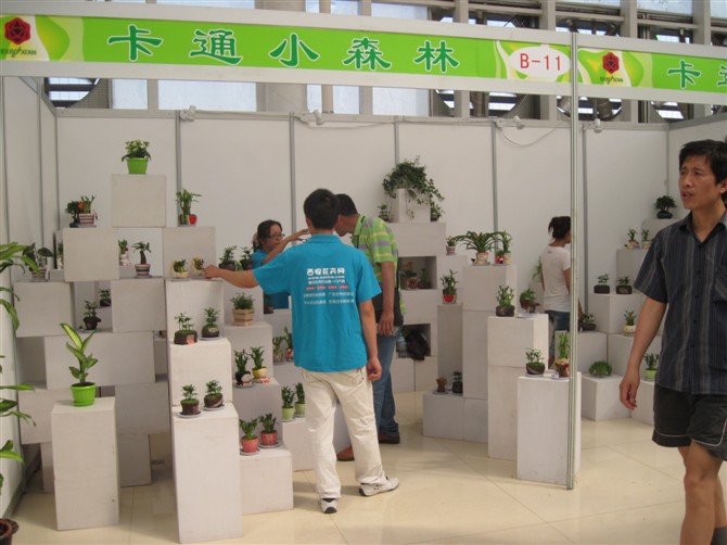 来到世园会的国际竞赛馆,感觉特别的凉爽,因为展厅都是绿色的植物 ,有特别漂亮由洋兰花组成的石榴花,还有很多不同的展区,每一个展区中都有很吸引人的植物,比如空气铁兰、含羞草、草娃娃、相思豆,还有那好似瀑布般得各种吊兰。袖珍版的盆栽小森林也是很吸引游客朋友们的眼球的,尤其是那些不同款式的花盆更是让人爱不释手。