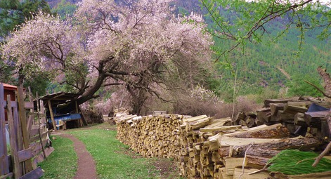 8.在西藏林芝,有一个三面环山的赏花胜地,叫做桃花沟。桃花沟是一片天然野生桃林,高处有水源,四周林木葱茏,终年碧绿苍翠,间有流水,清澈见底。每年的三、四月,寒意未尽,但是这片巨大的野桃林给林芝带来了一片壮丽的春天,当远方的雪峰还有皑皑白雪,桃花却已如醉霞绯云般地争相斗艳。