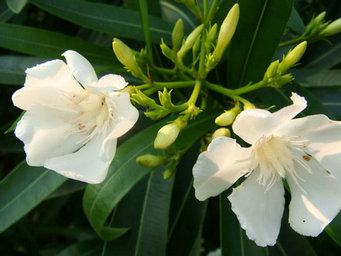 夹竹桃的花朵鲜艳,极易栽培,但其叶、皮、茎乃至花朵中均有毒。它分泌的乳白色汁液含有一种夹竹桃甙,误食会中毒。观赏这种花卉,不要接触花、茎、叶中分泌出的白色汁液。此外,如果接触过多还会引起呼吸道、消化道的癌症。