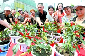 当天,五彩缤纷的辣椒盆景吸引主城市民的眼球。