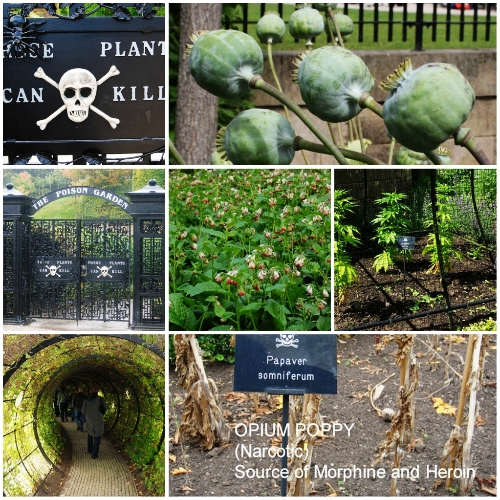阿尔威克城堡花园内种植的50多种危险植物,还包括魔术蘑菇、有毒的毛地黄、具有致命毒性的茄属植物、烟草植物、野生的莴苣。