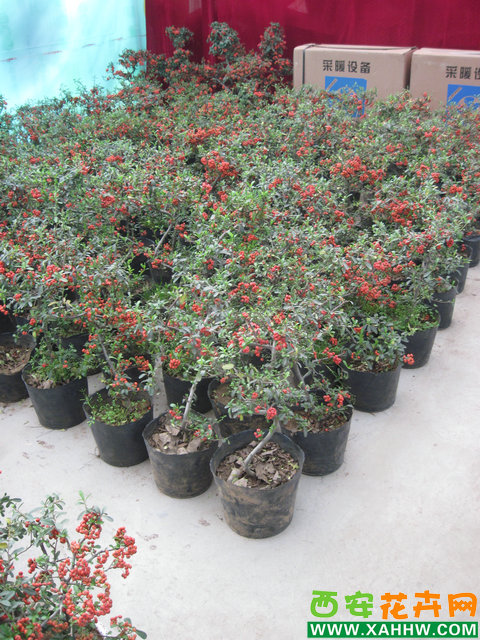 侧枝短刺状;叶倒卵形,长1.6~6厘米,复伞房花序,有花10~22朵,花直径1厘米,白色;花瓣数为5,雄蕊数为20,雌蕊数为1;花期3~4月;果近球形,直径8~10毫米,成穗状,每穗有果10~20余个,桔红色至深红色,甚受人们喜爱。9月底开始变红, 一直可保持到春节。是一种极好的春季看花、冬季观果植物。适作中小盆栽培,或在园林中丛植、孤植草地边缘。