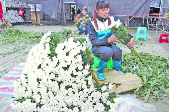 昨日,在将乐县安仁乡花卉种植基地里,工人们正在修剪菊花。该基地去年6月至今三期共种植菊花360亩,产800万支,主要出口日本和韩国,创汇近36万美元,在此基础上,基地扩建180亩,明年1月可投入使用。花卉产业成为当地农民致富增收的新兴产业。