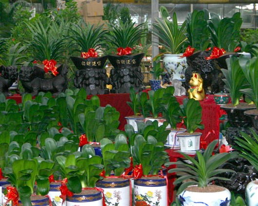 春节期间,鲜花市场红火。今年的花卉品种增多,品质也好于往年。人们大都购买一些绿色花卉,既增添节日喜庆气氛,又净化室内空气。图为顾客正在平泉花卉市场挑选鲜花。