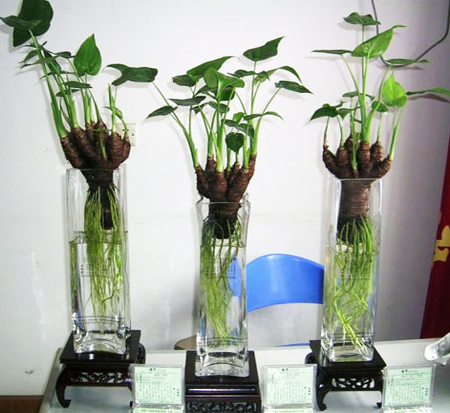 “每次换水时,要用清水冲洗植物的根部及容器,修剪枯枝败叶及烂根。”老韩特别把清洁作为重点介绍。他说,在水培植物正常生长的情况下,隔段时间就会烂掉一部分根,再生长出新的根来,所以发现烂根时,养花人不要着急,也不能置之不理,需要处理一下。