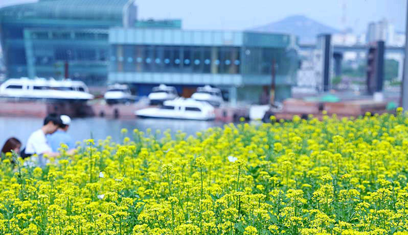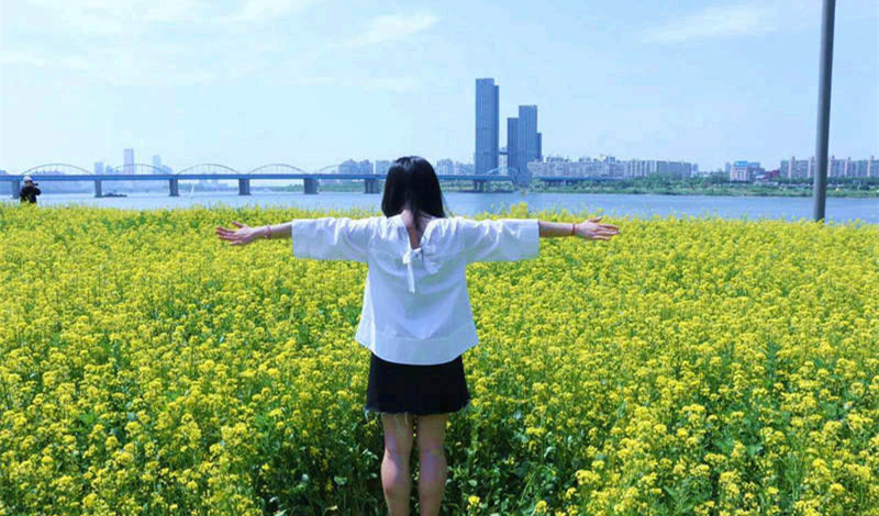 首尔的春日赏花季已接近尾声,桃花、樱花、梅花都陆续凋谢,而油菜花正抓住春天的尾巴盛开在汉江畔。金黄色的油菜花海与清澈的汉江交相辉映,形成一幅美不胜收的自然画卷。金浪涌动、花香袭人,随手一拍,便是一张精美的明信片。真可谓是“满目金黄香百里,一方春色醉千山”。