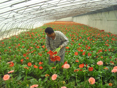 9月18日,浙江省建德市杨村桥镇绪塘村种植大户何天根正在对一串红、孔雀草、万寿菊等6万多株草花进行整理、分类,每株平均售价为1.5元,比去年高出0.3元左右,如今都已含苞欲放,适合一些城市在国庆节期间装扮市容,美化环境。