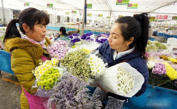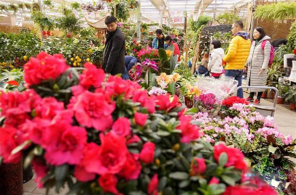 1月22日,市民在丰台区的一家花卉市场购买鲜花。春节即将来临,众多北京市民来到丰台区等地的鲜花市场采购鲜花和绿植,增添节日喜庆气氛。