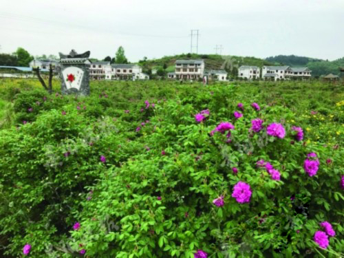 23日中午,记者在村里看到,居住较为集中的村庄前,成片的玫瑰花正在盛开,空气中弥漫着浓浓的香气。村民们说,这片玫瑰约有百亩,是3年前种下的,也是目前最集中的一片。