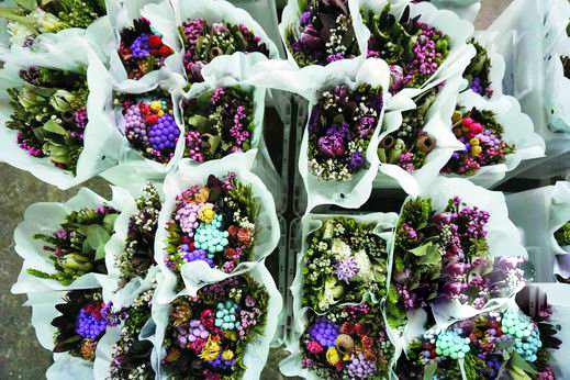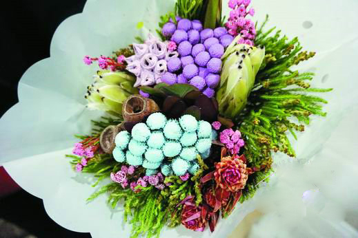 然而,近日昆明斗南花卉市场上出现了一种澳洲进口木本花材花束,实现了花店业者一直追求的物美价廉。据了解,该花束由7种至8种花材任意搭配而成,批发价格在80元到100元不等,深受花店业者欢迎。