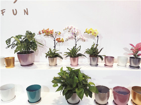 光美还不够,“创新”是展商口中出现频率最高的词。深圳科农展出了升级后的智能迷你植物墙。总经理黄惠君表示,随着家庭园艺用户对开花类盆栽需求量逐渐增大,在产品原有基础上加入植物补光灯,能有效提高室内开花盆栽的成活率。创新的基础是适应市场需求,实用才能让终端消费者接受。禾 B坊展出的烤漆树脂花盆在展会结束前就已全部售出,负责人董隽介绍,花盆内部结构有所创新,分别设计了沥水网板、蓄水槽、出气孔、注水导管,能合理控制盆内湿度。同时,烤漆材质能够有效阻隔紫外线,且耐运输。