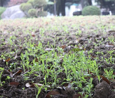 在杭州西湖公园,西湖美草坪、击楫草坪及竹亭草坪三处原有的绿色草坪不见了,取而代之的是新生的绿色花苗。据了解,这是西湖公园首次引进洒播技术,在这三处草坪上尝试景观野生花卉。