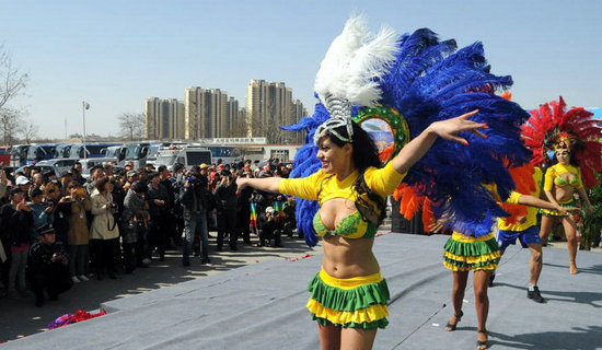 4月1日,来自巴西的演艺团体进行桑巴舞表演