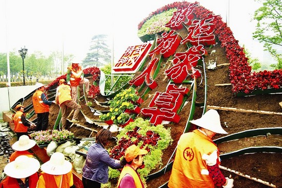 昨日,大型花卉扎景《武汉精神》在湖北武昌首义广场闪亮登场。武昌区园林局介绍,此次扎景突出武汉人“敢为人先,追求卓越”的精神,采用立体花坛工艺新技术来进行布展,花坛周边采用轮廓灯夜间照明。