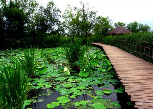 除了绿堤上盛开的各种花卉,在绿堤沿线,还有许多有人知之甚少,但景色十分优美的地方。西溪湿地内的植物园是比较容易被游人忽略的一片区域。沿着绿堤西口处弯弯曲曲的小径,就能进入这片景色十分优美的植物园。有些游客总认为植物园没啥好玩,其实,最能传递出西溪“生态水世界”的地方,就在植物园内。一路前行,游步道两侧分布着大小河塘,这时候正有大片大片的睡莲盛开在水上,偶尔还会有白鹭,黑水鸡掠过水面。据介绍,这里生长着600多种植物,如菖蒲、水茭白、水葱、浮萍、野芹菜等。长长的亲水栈道在塘边环绕,一路走去,幽幽的荷香伴着阵阵水波的清爽,让人乐而忘返。