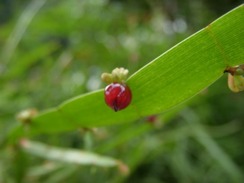 竹节蓼,又称编竹蓼,为常绿灌木。原产于南太平洋的所罗门群岛。枝条一般为圆柱形,有节,表面为暗褐色,有纵条裂纹。幼枝扁平、多节,像是绿色的叶片。叶很小、披针形,着生在各个节上,有时退化。花较小、色白,有的略带淡红。花常为1—7朵,聚生在扁平的枝节上,总状花序。一般在夏季开花,无甚观赏价值。但植株分枝密繁,形态奇特,常盆栽观茎赏叶。