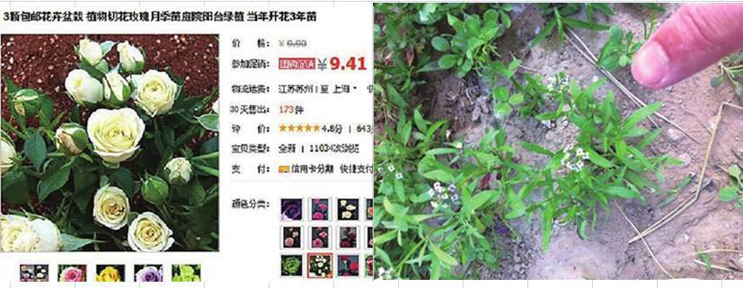 无论是网购还是在商贩那里直接买,都是有可能中招的,它们会准备一些看起来高大上的植物资料,花卉的品种、生长习性、开花的状况等情况都写得很清楚,但实际上卖的确是一些裸根的植物,而且是没有带花苞的,有的甚至只有一段根茎。