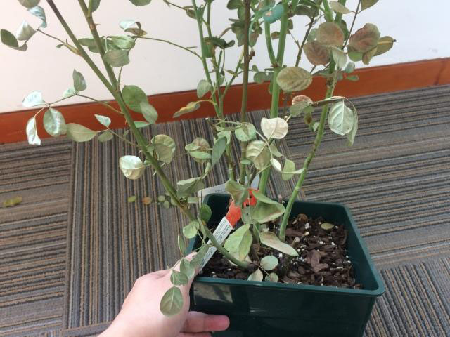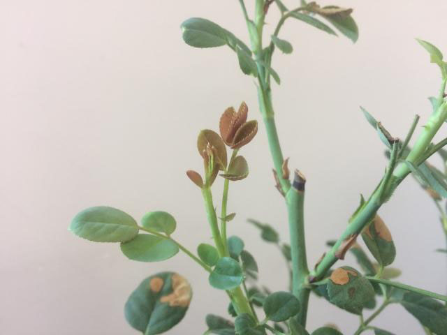 月季先整株呈耷拉状,后叶片发干发脆↓