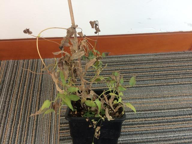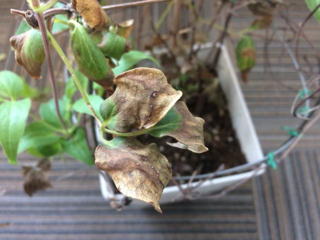 有花友放在朝西阳台上的月季和铁线莲被晒蔫了。本以为喜光的小月和小铁夏天还是养在户外会更好些,但没想到下午的太阳和温度比预料的“毒辣”的多,同时可能也有一些缺水,在七月初持续高温刚开始时就出现了被晒蔫晒枯的症状。