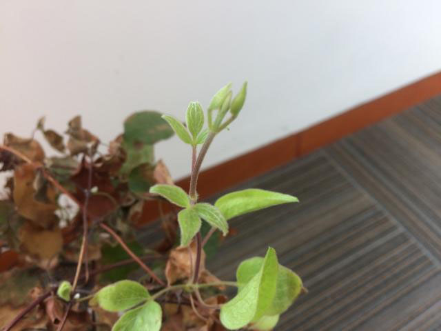 缓了较长时间才看到月季刚长出小小的新梢新叶↓