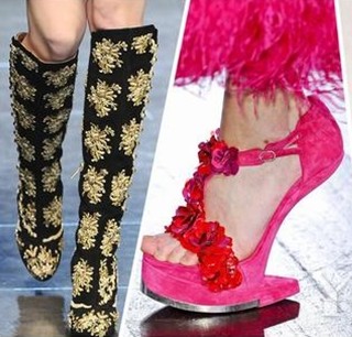 巴洛克风潮除了奢华的金色装饰外,花朵图案也是常见的艺术元素,让奢华和梦幻充斥着秋冬,巴洛克古建筑中的精美元素与花朵与壁画合二为一,勾勒在女性线条之上,精美得无以伦比。但是风潮下的花卉在宗教的强大影下下,更加神圣,花朵变形与精髓提取是设计师较为常用的设计手法。