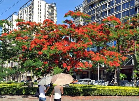 五月的海口凤凰花开红艳艳,把滨海椰城妆扮得更为灿烂多彩。近年来海口在绿化上“见缝插针”,植物品种多样化,常年有鲜花盛开,让海口更加美丽。