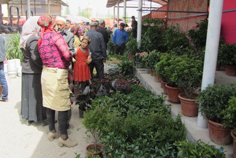 五月的新疆阿克陶绿意盎然,处处充满生机。花卉市场更是热闹非凡。
