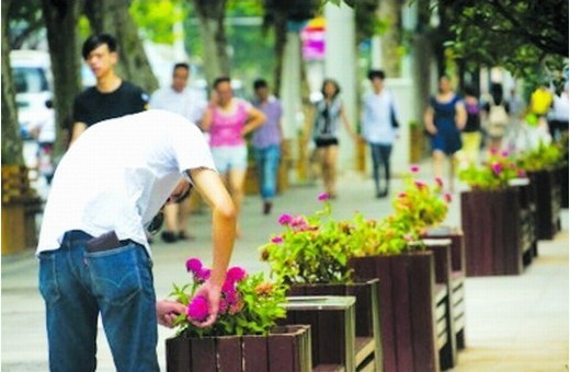 记者随后从球场街办事处城管科杨文俊处了解到,球场街辖区内的三阳路,从上月开始建设景观花街,共投资200余万元,设置了150组花箱,还有街边绿化带和路灯杆花篮等。花街设置一个月来,不断发生花卉缺失事件,经初步统计,已经损失百余盆各种花卉。捐花是街道部分居民的自发行为,此次共有20多名居民捐花,共捐出40多盆花卉。