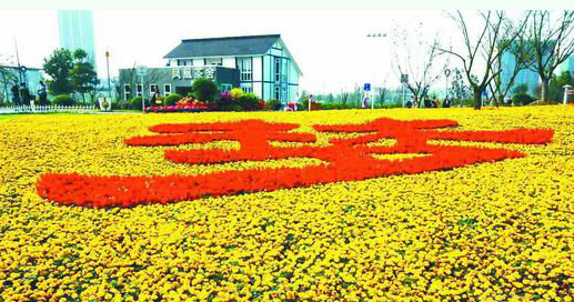 在四川成都市凤凰湖生态湿地公园,一个名为“圆梦”的花坛引人瞩目。该花坛长100米、宽120米,由孔雀草和一串红铺成,表达了人们祝愿生活幸福、实现伟大“中国梦”的美好愿望。