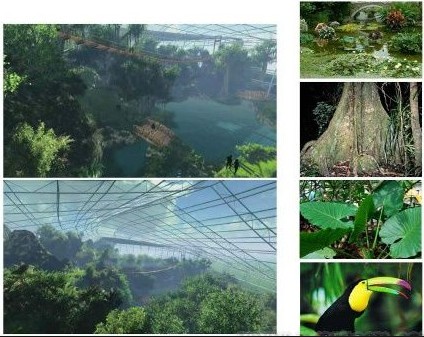 温室建筑是一个融合三种世界的物理形式,它包含三种生物群区:高山区,沙漠区和亚热带区,占地24,400平方米。每个区域都是独立的环境,有着与其他环境不同的气候特点。