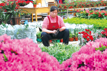 “三八妇女节”当天,在山东潍坊青州花卉交易中心汇集了妇女群众整理花卉。近年来,山东省潍坊青州市将发展花卉产业作为促进农村群众增收的重要举措,因势利导,出台多项措施积极引导广大妇女群众投身到发展花卉生产中去,目前,该市已有8万多名农家妇女熟练掌握300多个系列、2000余个花卉品种种植管理技术,成为花卉经济发展的主力军。