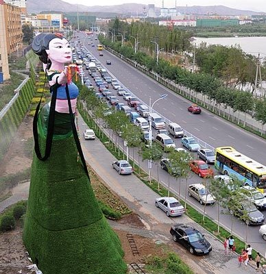 8月6日,在新疆天山区巴哈尔路路口,一个由花卉植物和彩绘组成的18米高的“飞天”造型落成,成为乌鲁木齐最高的造型作品。
