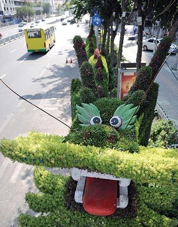 天山区广场绿化管理办公室主任李轶荣介绍,为迎接亚欧博览会,天山区今年所有的造型均用植物花卉建成,每个造型四周都栽植植物花卉,形成小花园,不仅营造氛围,也起到了绿化作用。