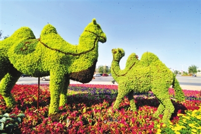 据了解,此次展摆的贺兰山路沿线公路节点包括丽景街、民族街等多个路口,展摆了骆驼、西瓜、凤凰、彩虹桥等10余个造型,在部分路段新增了农家小院等植物景墙,为造型景观“锦上添花”。绿化一处工作人员说:“今年,我们还在丽景街至万寿路路段两侧的行道树坑里摆放5万盆万寿菊、鸡冠花,每隔两棵行道树就要摆10盆。”各种造型、景墙的展摆已于29日晚全部结束。